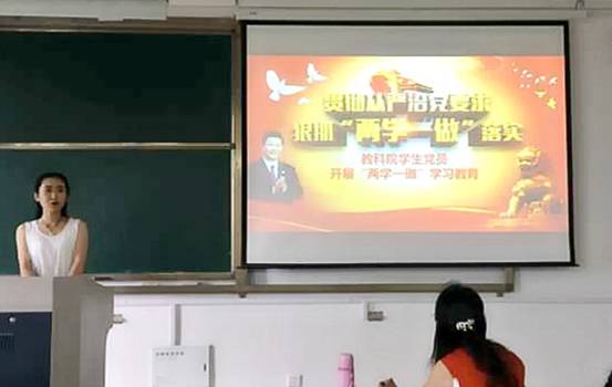 6月15日下午,学前教育系党支部邀请学前教育系优秀研究生学生党员王娜同学为学前教育系全体师生党员上了“两学一做”专题党课。