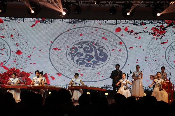我院民乐团合奏《爱我中华》和《渔舟唱晚》