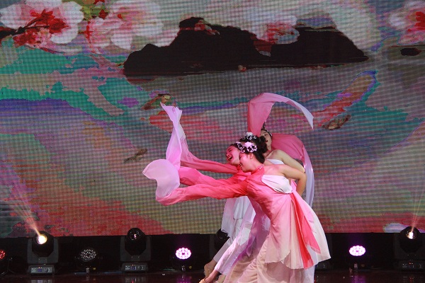 我院民乐团呈现的高昂激越的民乐合奏开启了晚会的序幕。民乐《爱我中华》和《渔舟唱晚》将古典音乐的精髓优雅呈现,声情并茂的朗诵《心若有梦,青春不老》抒发了毕业生们对未来的梦想与希望,活泼生动的儿童剧《兔气扬眉》将观众带回欢乐懵懂的童年时光,凛音会带来的《十年》、《曾经的你》则唱响了岁月中的青春故事。在师生的热烈期待中,学前教育系的潘莎莎与韩恬恬老师的琴筝合奏《云裳诉》震撼登场,二位老师的演奏炉火纯青,将如诉如泣的爱情故事演绎得淋漓尽致,将晚会推向了高潮。随后,歌曲《黄梅戏》则将古典与流行元素合二为一,给观众带来不一样的视听体验;情景剧《毕业季》生动幽默地演绎出同学们在通大教科的趣事,表达了毕业生们对母校和学院的依依不舍之情;创意节目《花开半夏》在柔美的朗诵声与伴舞中展现了毕业生在教科走过的匆匆四年;B-box表演凸显了年轻的潇洒与活力;古典舞《粉墨》含蓄柔美,别有一番韵味。晚会的最后,一段情景剧的演绎,将羞涩的告白与美好的祝愿化作大合唱《不说再见》,表达了毕业生对母校的留恋与不舍和对未来美好生活的憧憬与希望。