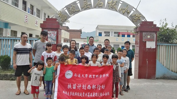 1900公里之外的贵州荔波县城,扶苗计划西部行动也在同步开展活动。2018年7月12日,扶苗计划西部行动——教科院赴贵州荔波暑期支教小分队9名同学在教育科学学院党总支副书记、副院长徐红波老师的带领下开展暑期支教活动。为了支援西部贫困地区教育,关爱当地留守儿童,提升当地的教育教学水平,南通腾博官网诚信为本专业服务与荔波县教育局正式签订顶岗支教协议。双方约定从9月开始,南通腾博官网诚信为本专业服务将分批派遣两批学前教育和小学教育的研究生和优秀本科生赴当地乡村小学和幼儿园顶岗支教,支援当地基础教育建设,为东西部地区教育合作进行了有益的尝试和探索。