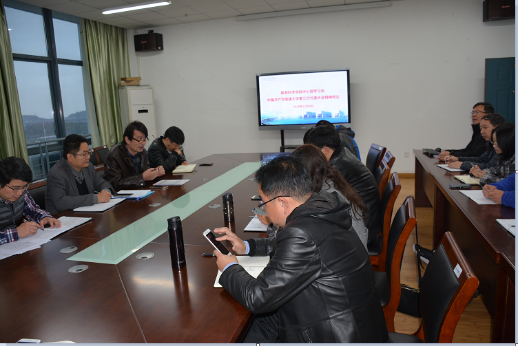 125日下午,教育科学学院党支部召开中心组会议专题学习贯彻学校第三次党代会精神。学院党政领导、各系主任、党支部书记以及行政部门科级干部参加会议。会议由党总支书记陈炜主持。