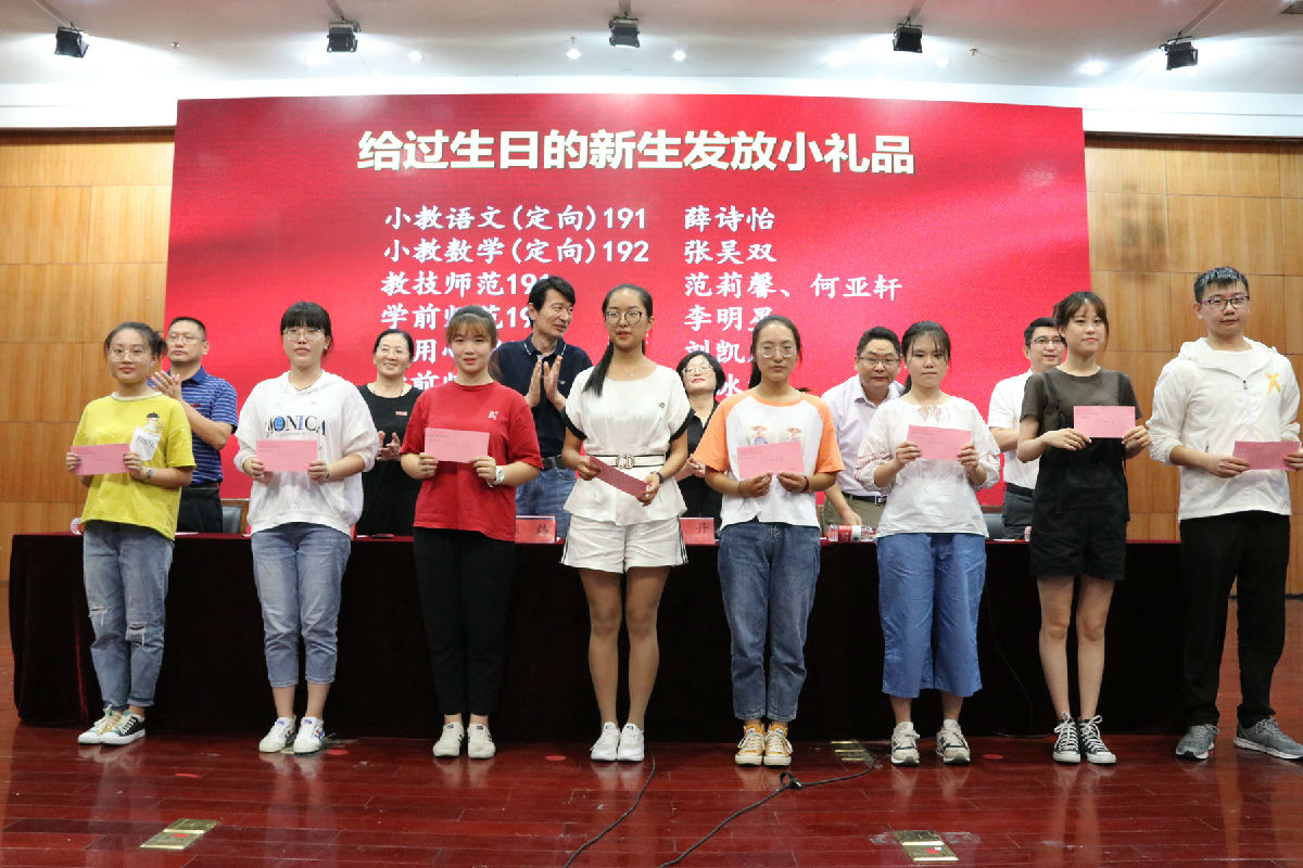 典礼开始前,全体师生观看了学院为2019级新同学精心制作的暖场视频。新生大数据分析、学院相关介绍、新生及新生家长采访、学院领导和老师的温馨祝福,营造了良好的典礼氛围。入学典礼上,学院还特意为开学一周内过生日的十名同学送上了精心准备的生日礼物,让新生们感受到来自教科院大家庭的温暖。典礼上,全体新同学为自己佩戴上南通大学校徽,宣告自己成为南通大学的一员。