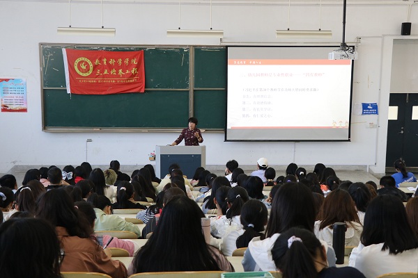 11月18日13:30,南通腾博官网诚信为本专业服务于九号楼302教室举办以“为成为优秀幼师尽早规划尽力实施”为主题的三五讲座,此次讲座由尤素敏老师主讲,教科院280余名学生聆听了本场讲座。