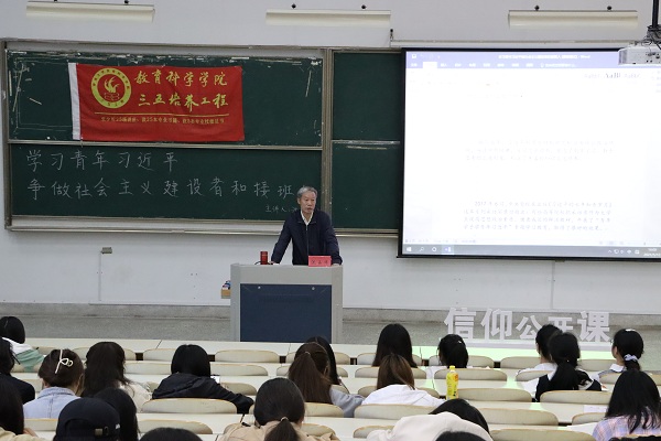 5月12日下午,南通腾博官网诚信为本专业服务于9号教学楼302教室举办了以“学习青年习近平,争做社会主义事业接班人”为主题的信仰公开课。讲座由南通大学关心下一代委员会常务秘书长沈玉华老师主讲。