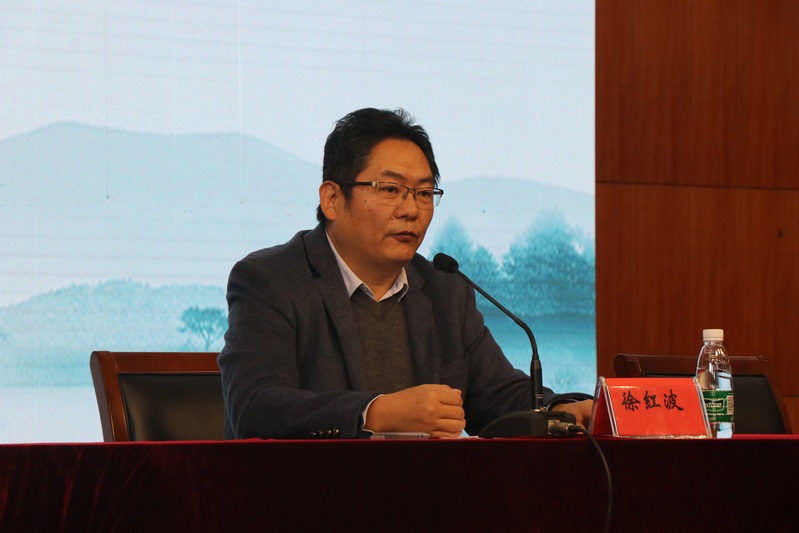 沈永江致欢迎词,他从专业构成、师资力量、培养方案等方面介绍了学院的基本情况,鼓励新同学在新的环境中开拓创新,学有所成。