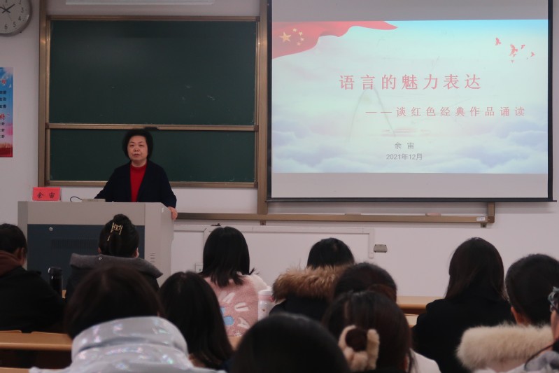 128日下午,国家级普通话测试员、南通市朗诵学会副会长、南通市教育局副调研员余宙应邀为我校教育科学学院师生做了题为“语言的魅力表达——谈红色经典作品诵读”的专题讲座,70余名小学教育、学前教育专业学生参加了本次讲座。