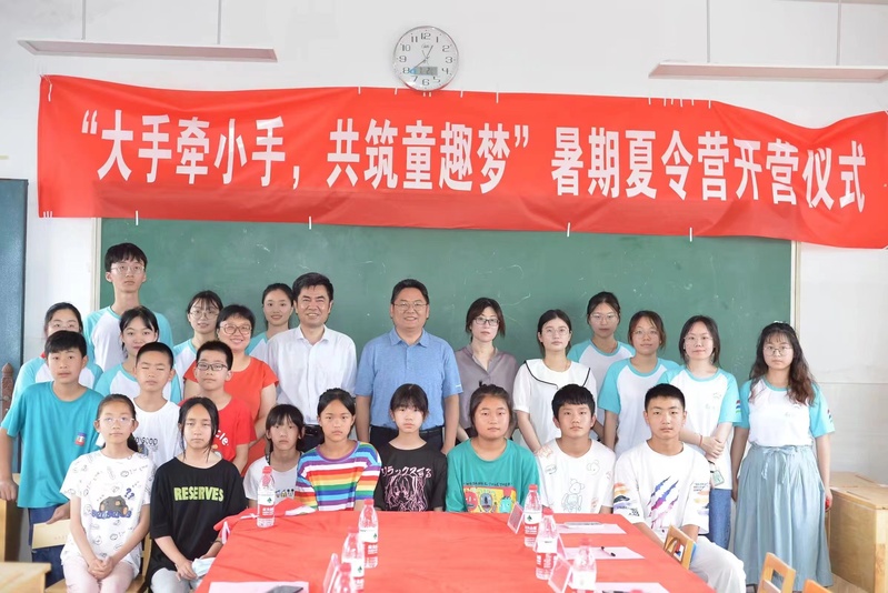 7月9日,学院情系村小爱心助教社在南通市文华小学举行“大手牵小手,共筑童趣梦”暑期夏令营开营仪式。