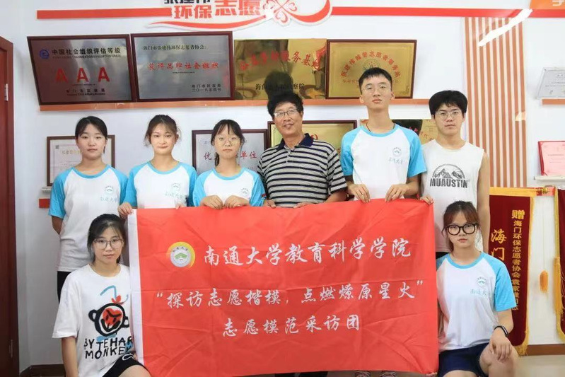 学院“探访志愿楷模,点燃燎原星火”志愿模范采访团采访海门区环保志愿者协会会长张建伟