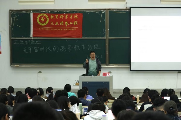 2022年11月23日,教育科学学院于9号楼302教室举办了以“元宇宙时代的高等教育治理”为主题的三五讲座,钱小龙教授担任主讲人,教科院260余名同学参加了此次讲座。