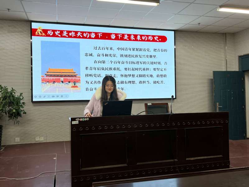 教育科学学院研究生会主席、研究生第一党支部支委王文媛同学围绕“以史为鉴,可以知兴替”这一主题发言,她说过去的百年,中国青年紧紧跟着党,把青春的忠诚、奋斗和荣光,镌刻进民族复兴的史册。历史是昨天的当下,当下是未来的历史。在向第二个百年奋斗目标进军的关键时刻,吾辈青年应肩负民族重托,扛起时代重担;要坚定不移听党话、跟党走,怀抱梦想又脚踏实地,敢想敢为又善作善成,立志做有理想、敢担当、能吃苦、肯奋斗的新时代好青年。