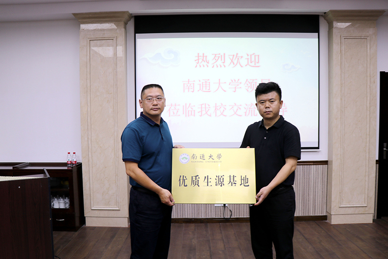 6月23日-24日,教育科学学院院长沈永江带队到淮安开展招生宣传,并分别与淮安中学校长于敏、淮阴中学教育集团淮安市新淮高级中学校长蒋鼎宏签署《南通大学优秀生源基地建设协议书》,向两校颁发“南通大学优质生源基地”牌匾。