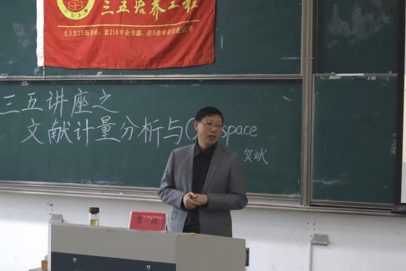 11月10日下午,我院于9号楼201教室举办以“文献计量分析与Citespace”为主题的三五讲座。讲座由贺斌老师主讲,我院200余名同学参加了讲座。