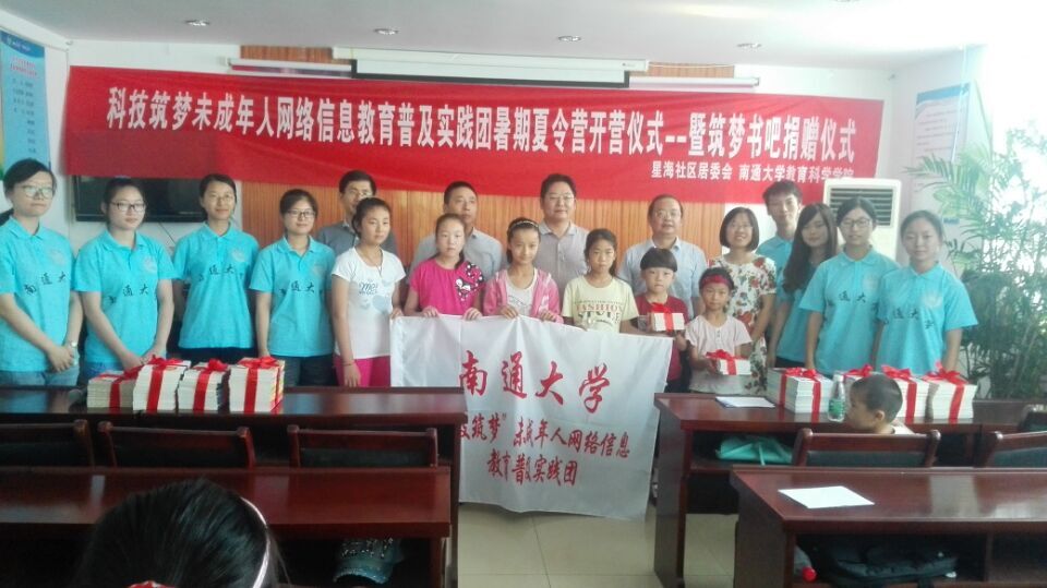 7月13日上午,由南通大学“科技筑梦”未成年人网络信息教育暑期夏令营在南通市开发区新开街道星海社区开营。新开街道钱建忠书记、南通大学教科院党总支副书记、副院长徐红波老师、教科院团委书记蔡婧老师等作为嘉宾,出席了仪式。