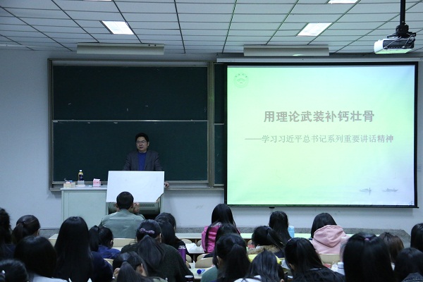 本次培训由院党总支副书记副院长徐红波老师主,主题是用理论武装补钙壮骨——学习习近平总书记系列讲话。徐书记带领入党积极分子共同深入学习习近平总书记治国理政的战略思想,包括一个梦想,两个目标,三个倡导,四个全面,五大发展理念等相关内容,旁征博引,深入浅出,使同学们深刻理解了共产党的时代使命与责任,明确了每一位入党积极分子在以后的学习和生活中重视学习,关心时事,增强创新精神与实践能力,用理论武器武装自己,以实际行动践行社会主义核心价值观,脚踏实地一步步向党组织靠拢。
