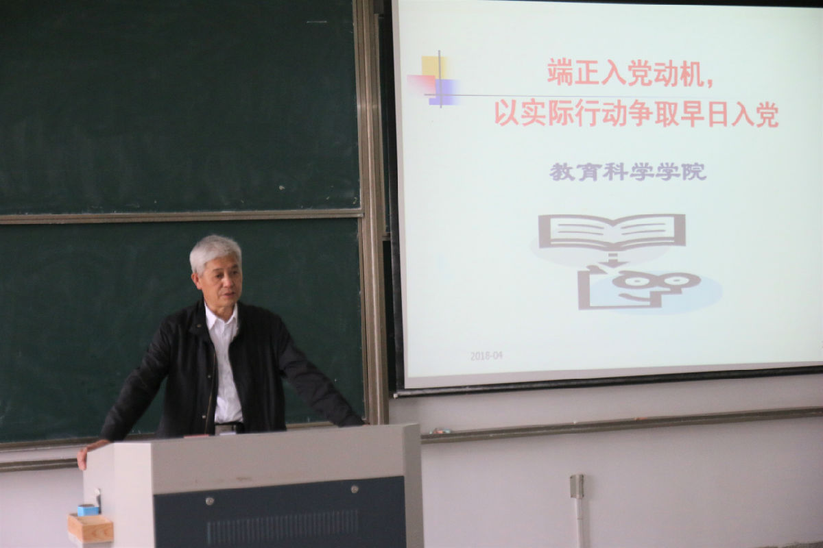 4月21日下午,教育科学学院调研员季学军研究员为第二十二期入党积极分子培训班学员作“端正入党动机,以实际行动争取早日入党”主题讲座。