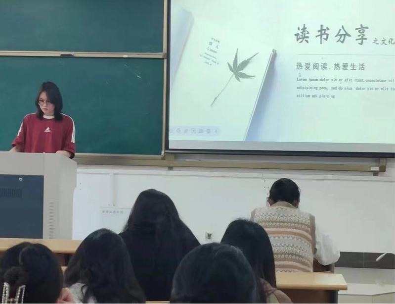 应用心理221班的黄健健分享了余秋雨的作品《文化苦旅》,应用心理221班的王才宇分享了沈从文的作品《围城》,应用心理222班的王婷婷分享了霍达的作品《穆斯林的葬礼》,应用心理222班的陆亮宏分享了路遥的作品《平凡的世界》。