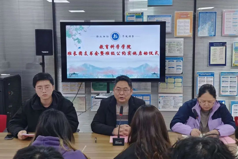 教育科学学院于3月27日下午在李园“一站式”学生社区举办全体班长团支书会暨班级公约实施启动仪式。学院党委副书记、副院长徐红波出席,学工办主任陈淑慧主持会议,全体辅导员及大一、大二、大三班长、团支书参加会议。