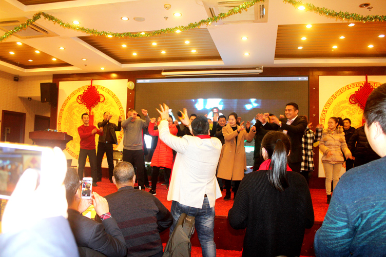 年会有主持人精彩而又真情的新年献词中拉开帷幕,在总经理童海标先生的带领下全体销售员热跳“抓钱舞”而渐进年会高潮。在各位部门负责人上台讲话后,由总经理童海标先生向全体同仁送上诚挚的新年祝福和向全体员工表达感恩之心。