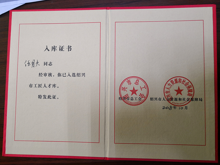喜悉,公司附件车间主任任月夫师傅入选绍兴市工匠人才库,为之鼓舞!可喜可贺!他爱岗敬业,对工作一丝不苟,已在公司核心技术岗位競兢业业工作15年,他为人谦和,不骄不躁。在平凡的工作岗位上践行着“工匠精神”。是我们全体员工学习的榜样!