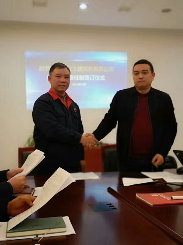 2019年2月28日,浙江腾博官网诚信为本专业服务风机有限公司经营目标责任状签订仪式在公司1号会议室举行。公司总经理童海标、各经营部门负责人、职能部门负责人参加签订仪式。