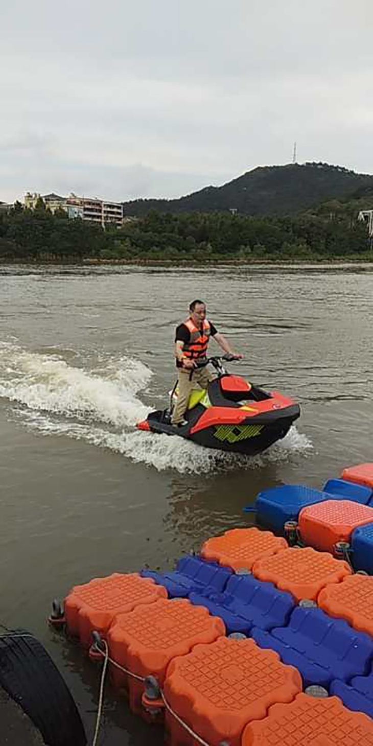 下午三时,大家到达了公司赞助的救援队码头,此时公司已为大家烧烤准备了整个一只新鲜的羊肉及其工具,救援队兄弟们已经给烧烤的羊肉切成了小丁子,大家一看这么大一盘羊肉,唤呼雀跃,洗洗手齐上阵,共动手,一起串起了羊肉串,一小会儿功夫一百多串羊肉齐刷刷的串好。个别年轻的员工看到停在码头的快艇,已是迫不及待,都想令人欲试身手,这家伙可是好多人平生第一次玩,既兴奋又胆怯,跟随着我们救援队师傅指导下,个个穿好救生衣,都想跃马扬鞭。第一个上场的是我们箱体车间的小李,他好像天生是一个快艇手,一上场就好比是一个老手,没有半点胆怯,拉起油门就直飞水面,溅射出层层水花,刺激而欢愉的叫喊声不绝于耳,脸上推满了开心快乐!三圈下来顺利入泊位。在他的带领下大家一一体验了这水上摩托的惊险刺激。事后彼此分享这份喜悦!