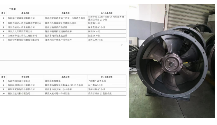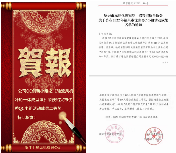 近日捷报频传,好事接踵而至,由公司QC创新小组申报的《轴流风机一体式成型法》喜获绍兴市优秀QC小组成果二等奖。该成果是公司中央研究院自主设计,拥有自主知识产权的全新一代叶轮,代表行业较高的制造水平。该成果无论从风机气动性能、制造效率、绿色环保、可靠性等方面较上一代叶轮均有大幅提升。该叶轮采用6叶弯掠叶型,在有效抑制端壁边界层分离同时减少二次流损失,提高风机初始压力。系列风机达到GB19761-2020 《通风机能效限定值及能效等级》2级及以上标准。后期将大范围应用于高端工民建项目。