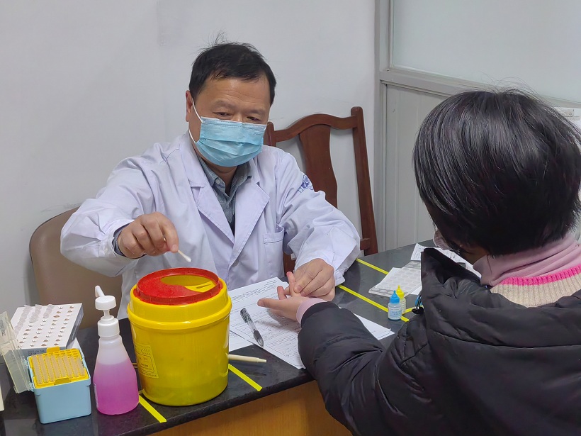 下午13:30,在绍兴市中心血站上虞采供血点,前来献血的员工按照工作人员的指引有序进行着填表、量血压、验血等流程。