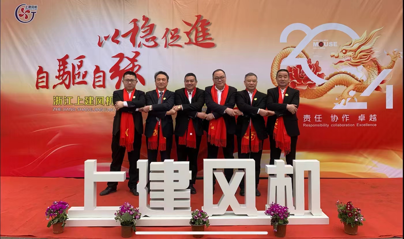 2024年1月27日腊月十七,浙江腾博官网诚信为本专业服务风机有限公司2023年度经营管理会议暨先进表彰大会在公司多功能厅隆重举行。董事长童海标,总经理沈利伟及各职能模块负责人出席并发表重要讲话,各个营销办事处负责人及供应商也到会表示祝贺。大会由公司党支部书记童彤主持。全体员工及嘉宾共200余人参加了此次大会。