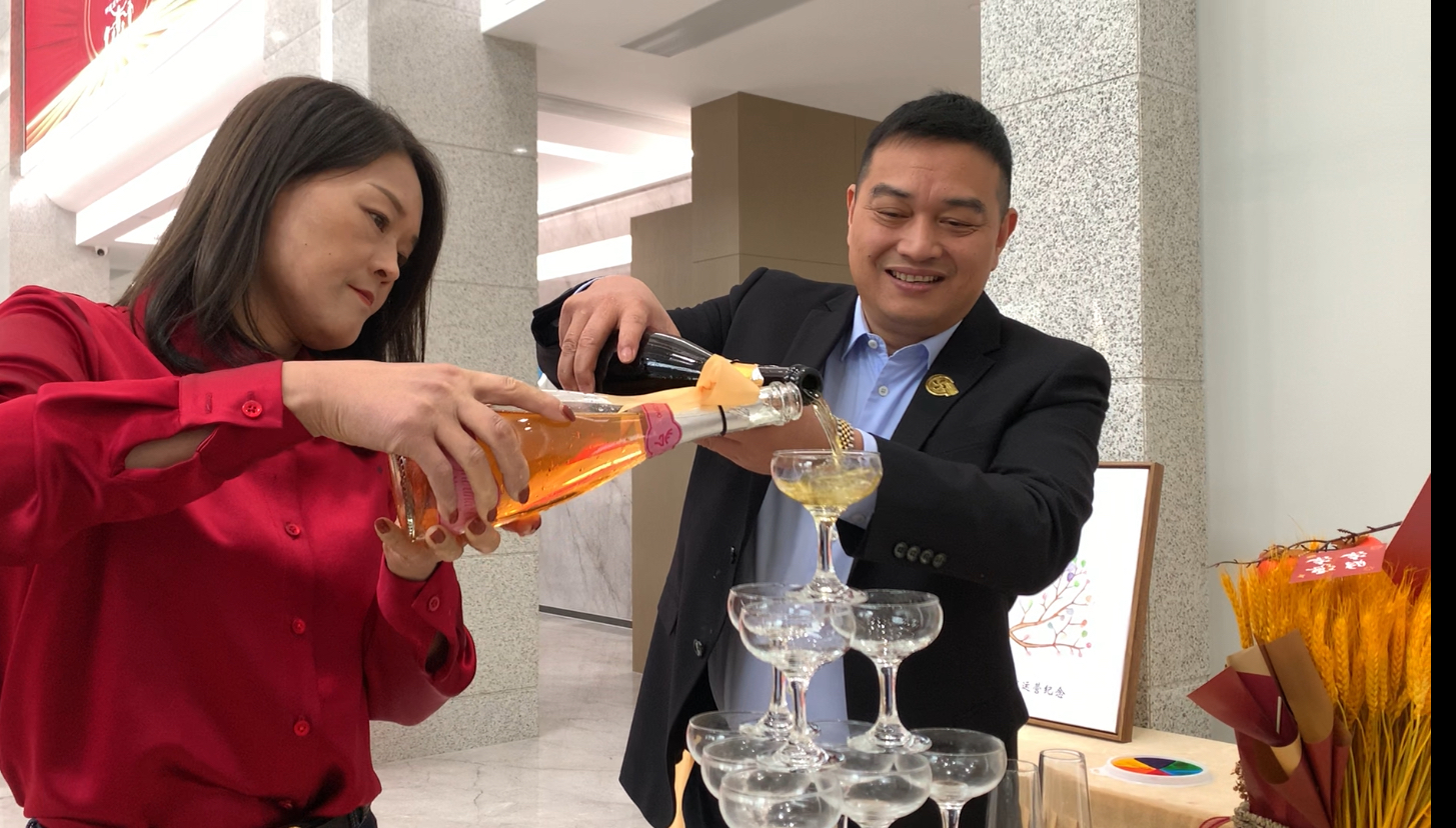 随后,在现场全体员工见证下和热烈的掌声中,董事长携手其夫人共同为运营决策中心进行了揭幕,大家共同举杯,致敬过往的携手共进,更愿未来与大家相互扶持、彼此成就,现场气氛在这一刻被推向高潮。